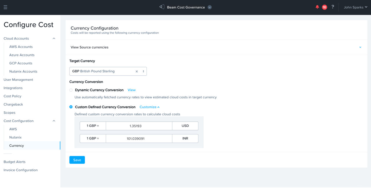 The Nutanix Cloud Manager™ - Cost Governance (formerly Beam) solution has been helping enterprises track and save on cloud infrastructure costs. NCM Cost Governance currently helps customers from more than 50+ nations build accurate cost reports, and we have listened to customer feedback on local currency support. Financial administrators and cloud managers want to visualize cloud spend reports in their local currency for better understanding and familiar reports across organizations without converting them every time. In addition, a financial cost center within an organization could consume resources across multiple cloud providers who might report cloud costs in different currencies. This makes it very complex to get a cost center spend report in a single preferred currency.