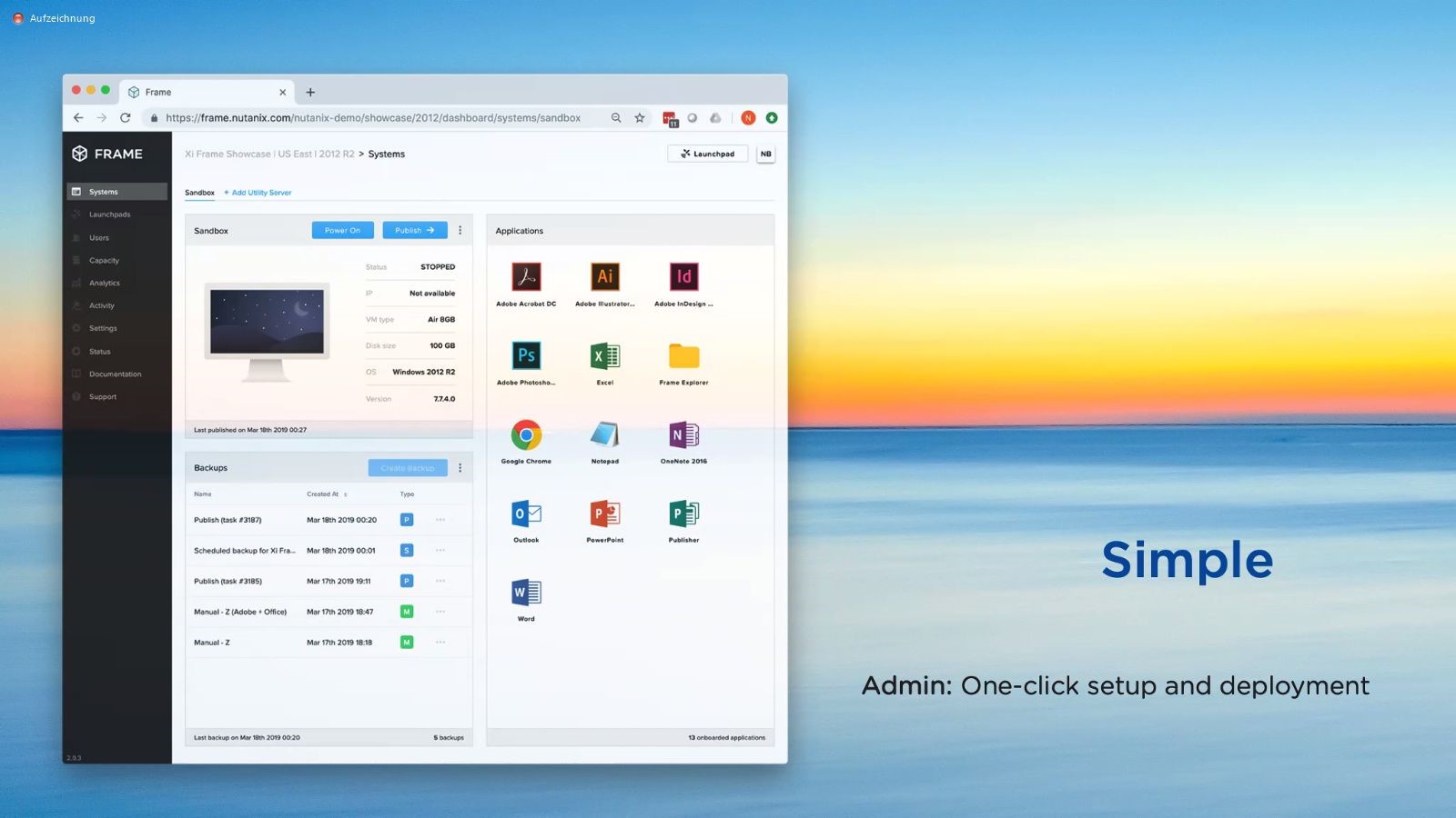 Unternehmen legen für die Nutzung von Xi Frame zunächst die sogenannte Sandbox fest. Dabei handelt es sich um die initiale Instanz eines Arbeitsplatzes, welche je nach Bedarf vervielfältigt wird. Dabei kann dem Endanwender sowohl ein vollwertiger Windows-Desktop als auch einzelne Anwendungen zur Verfügung gestellt werden. Den Rest übernimmt Nutanix. Dazu gehört u.A. die optimale Nutzung der verfügbaren Bandbreite: Eigens entwickelte Streaming-Protokolle sorgen für akzeptable Performance aus Sicht der Anwender, selbst bei geringen Bandbreiten.