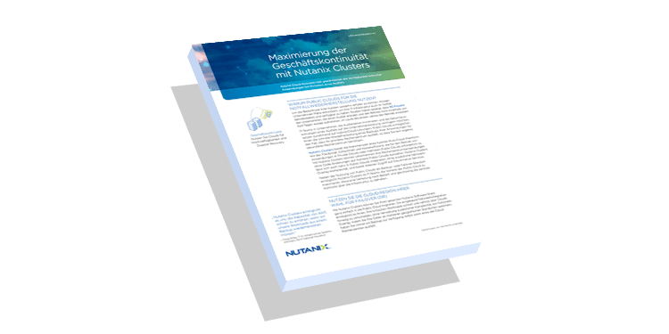 Nutanix bietet eine Reihe von Lösungen für Geschäftskontinuität und Disaster Recovery an, mit denen Sie Data Protection und Disaster Recovery direkt in Ihre bestehenden Infrastrukturen und Prozesse integrieren können. So kann die Nutanix Disaster Recovery beispielsweise dazu beitragen, Ausfallzeiten und Datenverluste im Falle einer Störung zu minimieren.