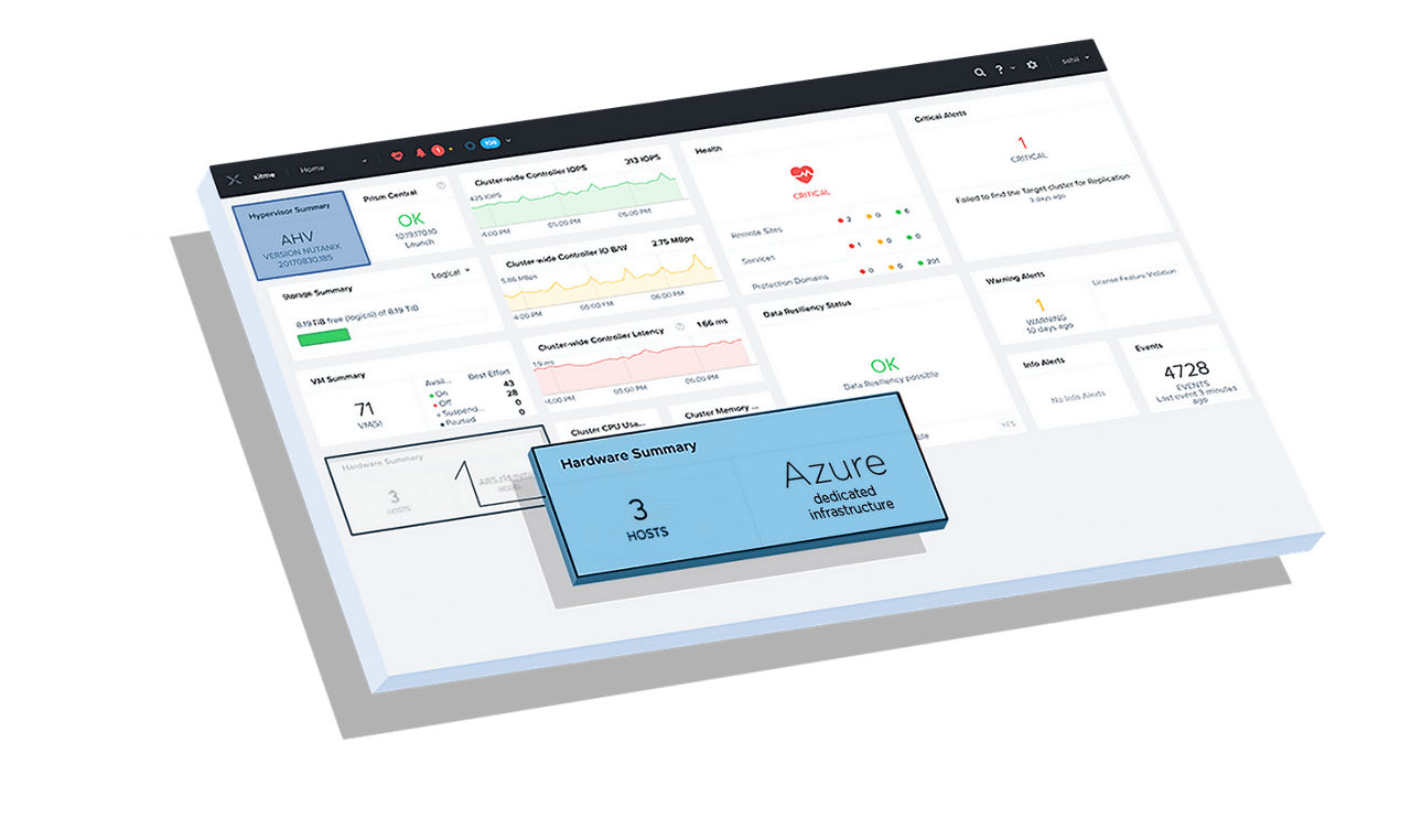 Nutanix Clusters bietet eine Hybrid-Cloud-Infrastruktur mit jener Flexibilität, Einfachheit und Kosteneffizienz, die für die Verwaltung von Anwendungen und Infrastruktur über Private und mehrere Public Clouds hinweg erforderlich ist. Mit Nutanix Clusters auf Azure können Sie eine Hybrid-Cloud-Plattform zusammen mit einer einheitlichen Verwaltungsebene aufbauen, um Anwendungen und Daten über die Public Cloud mit Microsoft Azure und der Nutanix Private Cloud hinweg zu verwalten.