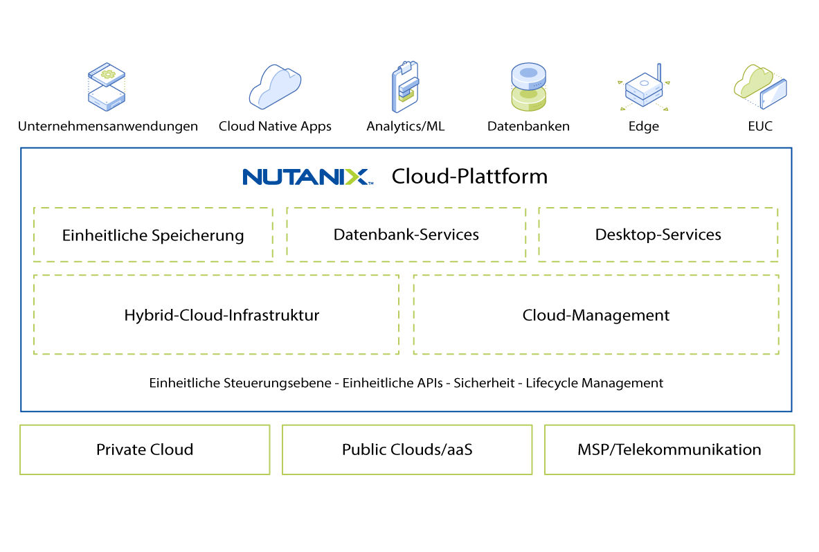 Nutanix bietet eine einzige Plattform für die Ausführung und Verwaltung all Ihrer Anwendungen und Daten – On-Premises, an der Edge und in der Cloud –, während gleichzeitig der Betrieb vereinfacht wird und Sie dadurch positive Geschäftsergebnisse erzielen können.