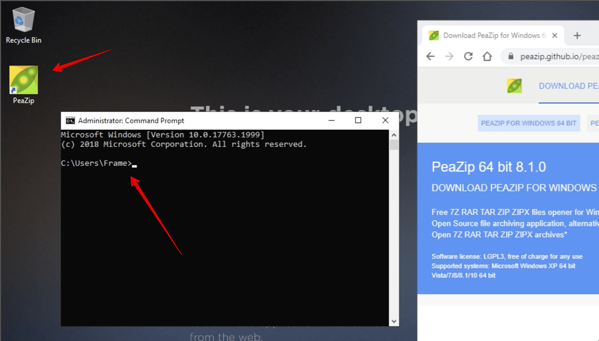 The publish takes a few minutes, but when completed, you can create a Frame Desktop Launchpad and start a Frame session. Once in that session, you will be logged on as the local Windows admin user called “Frame” and you will be able download and install an application. I chose peazip. It should install, run fine, and even create a desktop icon.