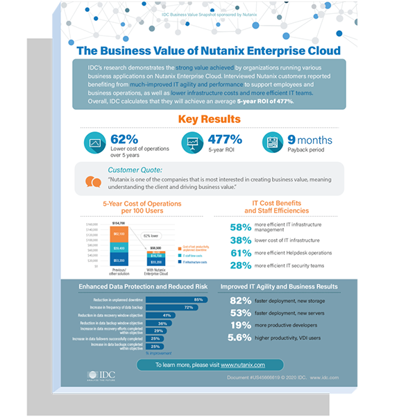 Source: IDC White Paper, sponsored by Nutanix, Organizations Leverage Nutanix Enterprise Cloud as Scalable, High-Performing, and Cost-Effective Infrastructure Foundation, January 2020