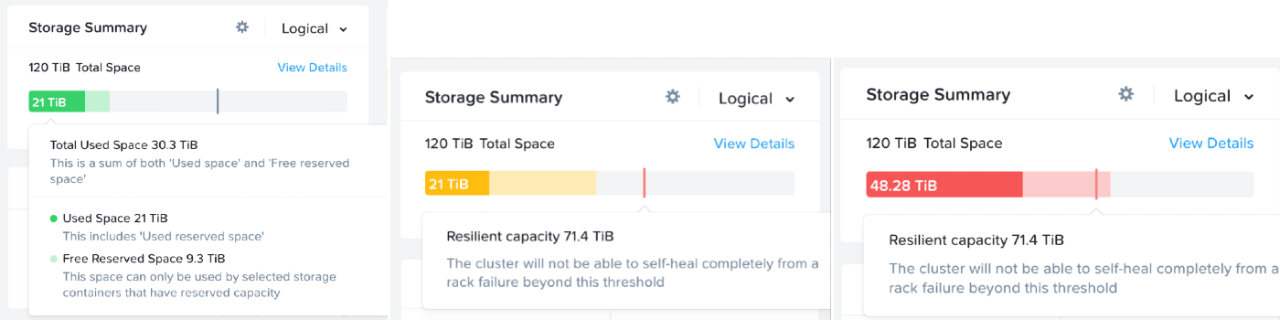 Along with these enhancements to the data path itself, new visualization functionality has been added to Prism to give administrators greater insight into their storage resiliency and utilization.