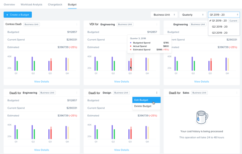 How much did a particular team spend on VDI deployment last month in public as well as private clouds? How should you allocate that spend against their cost center’s budget? This is a well-known but not easily addressed conundrum. Centralizing spending across clouds, automating spending allocation to a cost center by using resource tags to identify spending attributable to them, and automating the chargeback process for spending associated with untagged resources drives financial accountability. Remember - with great cloud spending comes great responsibility to keep budgets under control.