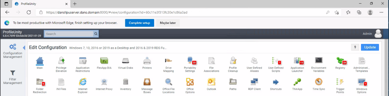 Liquidware has created configuration templates that automatically pre-configure settings based on the goals you are trying to achieve in your environment. You also can add or import custom templates into this library from the Administration area.