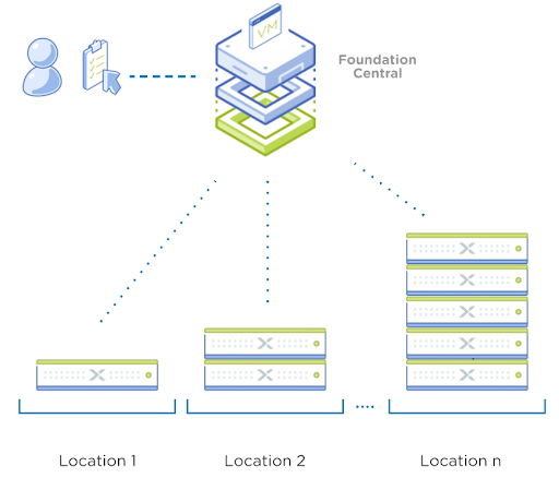 If physical access to your datacenters is not an issue, creating new infrastructures (or expanding existing ones) on-premises is not only possible, but extremely simple. Once infrastructure nodes have been installed in a rack, connected to power and networking, the Nutanix software stack, consisting of AOS and your choice of hypervisor, can be remotely deployed from anywhere using Foundation Central. This microservice runs within Prism Central and acts as the orchestrator for global node imaging and configuration.