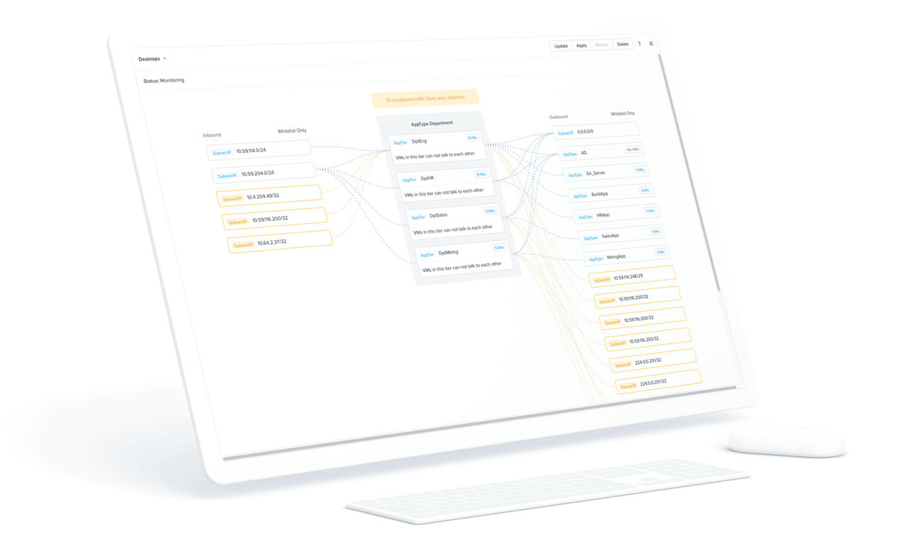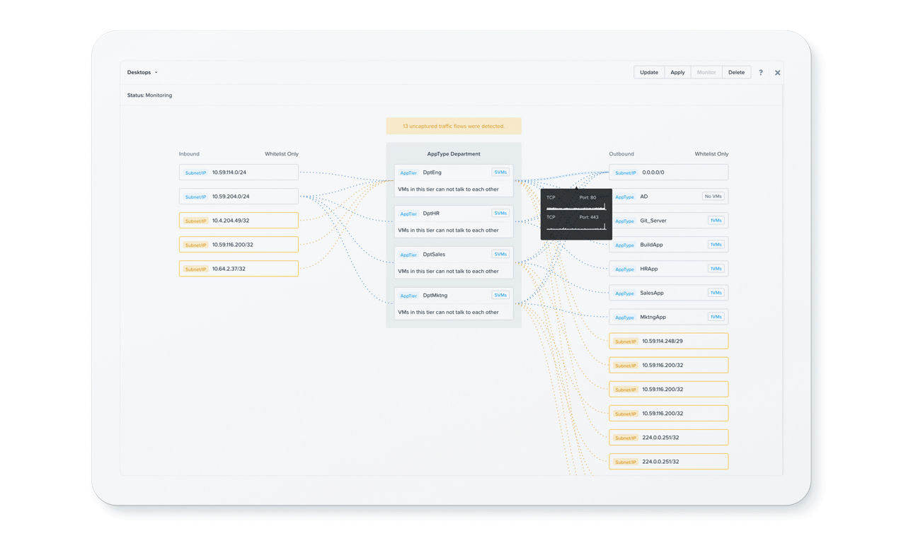 Enable application tiering at the OSI L4 with the option to create deeper inspection at L7 using partner integrations built for Flow Network Security.