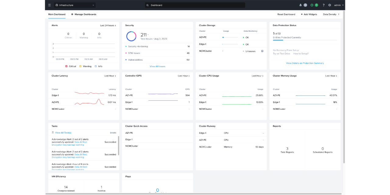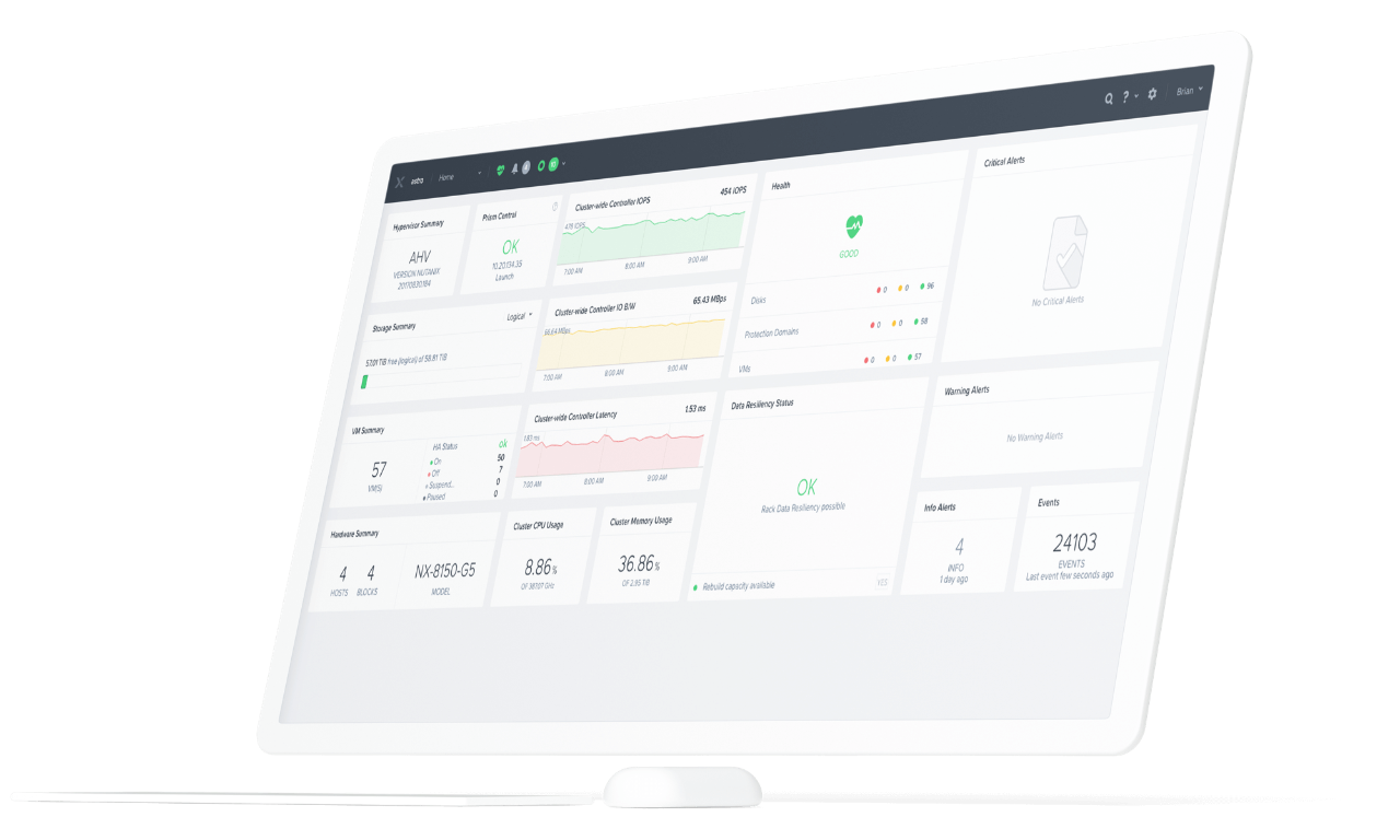Navigate effortlessly across Nutanix Cloud Platform functions, features, applications, and dashboards on one screen to enhance operational efficiency and reduce context switching.