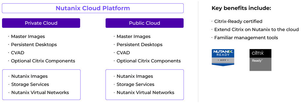 Working with Nutanix Cloud Clusters (NC2), Citrix-Ready validated solutions enable business growth and agility with seamless portability on-premises, at the edge and in public clouds.