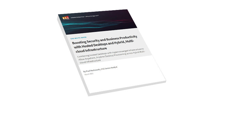 Read this white paper from ESG to learn how combining hosted desktops with hyperconverged infrastructure allow anywhere, anytime desktop provisioning across Hybrid Multicloud infrastructure.