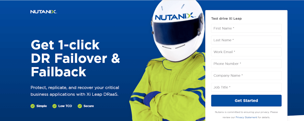 フルスケールのリカバリサイトに投資するだけの時間も予算もない場合は、当社のクラウドベースのディザスタリカバリサービスである Xi Leap でアプリケーションを素早く復旧させましょう。立ち上げて稼働するまでに、1日とかかりません。DRソリューションの設計、構成、そしてテストをゼロから行う必要はありません。即座にセットアップして、僅か数クリックでフェイルオーバーとフェイルバックを行い、ものの数分でアプリを保護できます。