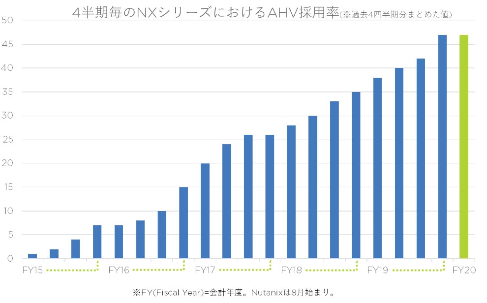 Nutanix AHVは2015年に提供が開始され、ハイパーバイザーとしてはかなり後発の製品であるにも関わらず、Nutanix NXシリーズ(Nutanix自社ブランドで提供されるHCIアプライアンス)の47%のノード(直近1年間の実績により算出)がNutanix AHVとの組み合わせで導入されており、世界最大のNutanixユーザーも大規模環境をすべてNutanix AHVで構成しています。ここでは、急速な広がりを見せるNutanix AHVの特長、機能、ユースケースなどについて紹介します。