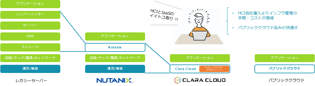 2018年、クララオンラインのIaaSサービスClara CloudにNutanixのハイパーコンバージド・インフラストラクチャー(HCI) が採用されることになりました。Nutanix Cloud Platform をベースとした新しいクラウドサービスは、初期費用0円のサブスクリプション提供を開始しました。