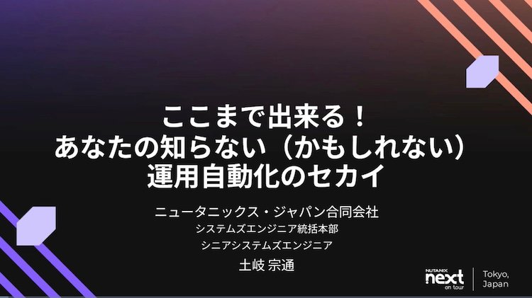 本セッションでは、皆様がまだ使いきれていない(かもしれない)Nutanixソフトウェアの運用自動化機能の数々をご紹介します。