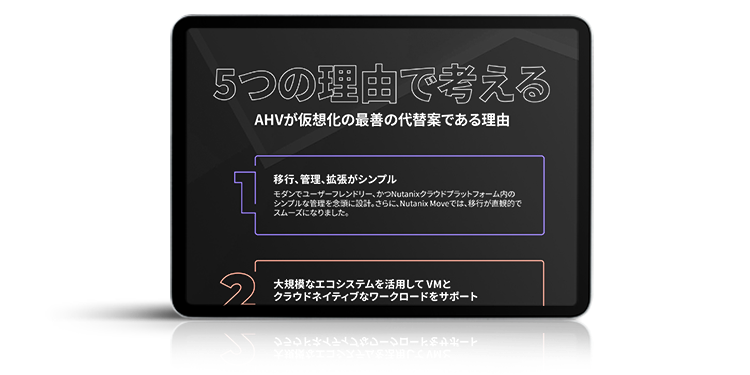 AHV により管理が簡素化・自動化されるため、専門的な IT スタッフの負担を軽減し、効率性とコスト管理を向上させることができます。