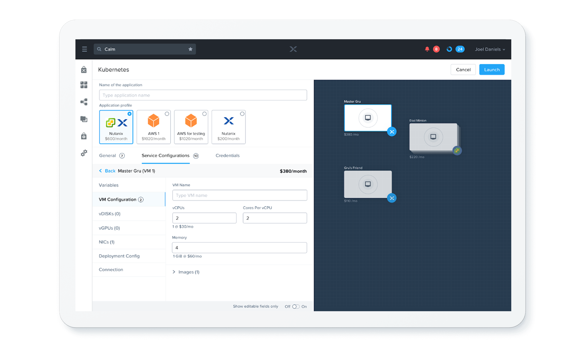 NCM for Self-Service(旧称 Calm)は、セルフサービスと自動化を可能にし、役割ベースのガバナンスを一元化することで、ハイブリッドクラウド環境全体にわたるアプリケーションの管理、デプロイメント、スケーリングを効率化します。