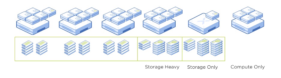 그림 1: 스토리지 전용 노드와 컴퓨팅 전용 노드를 사용한 유연한 확장.