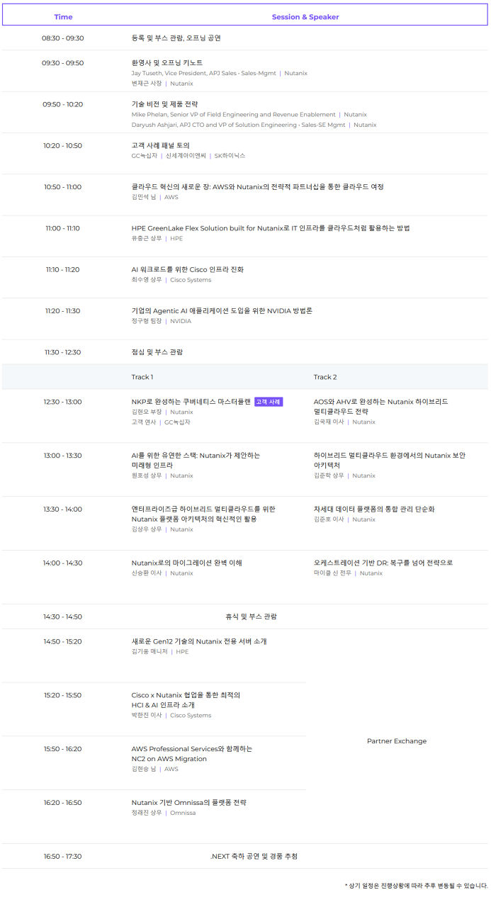 ![]() | 변재근 Nutanix에서 한국 지역 사업 총괄을 맡고 있는 변재근 사장은 엔터프라이즈 시장 부문에 대한 28년 이상의 폭넓은 영업 경험 및 고객과 파트너를 위한 가치 창출에 대한 확고한 의지를 바탕으로 하이브리드 멀티클라우드 컴퓨팅의 선도 기업인 Nutanix의 전략 및 비즈니스 성장을 이끌고 있습니다. |
