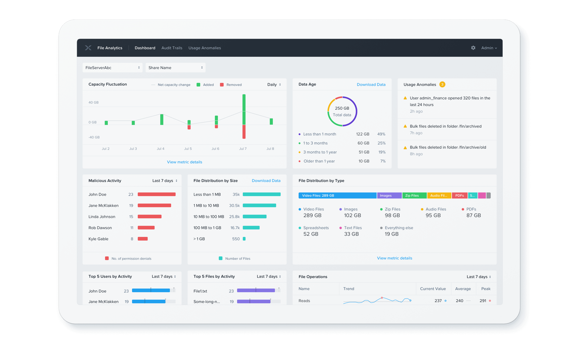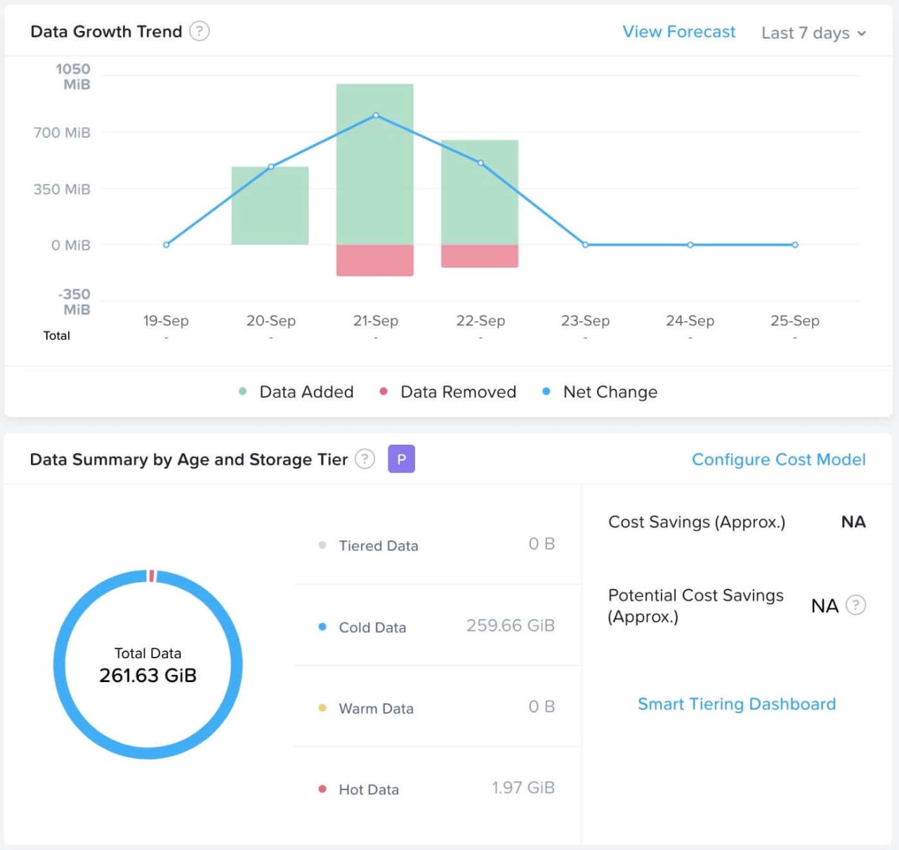 - Data Growth Insights: Track usage trends and optimize storage capacity for better cost control and compliance.