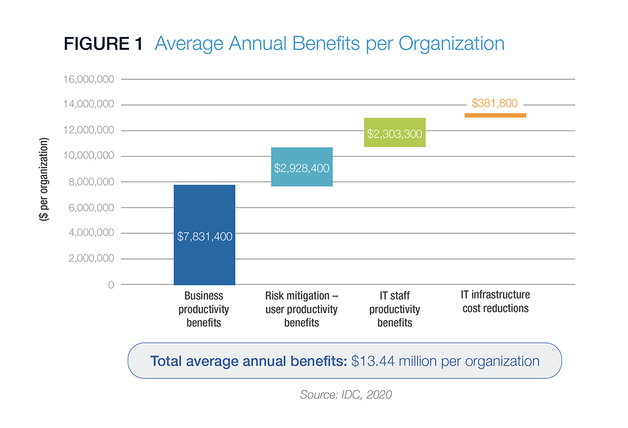 The 2020 study also shows, in comparison with the earlier reports, continued significant benefits in both overall TCO percentage reduction and in average business productivity benefits per organization.