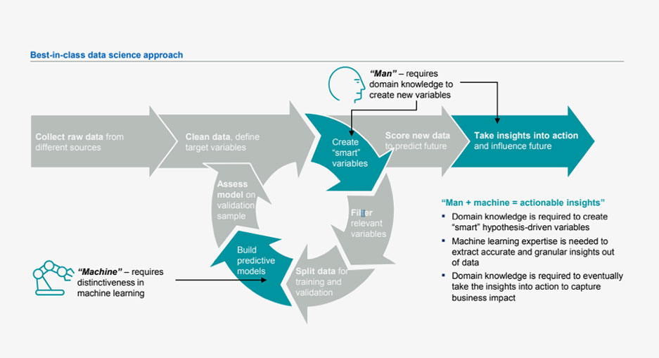 However, AI isn’t the only aspect that matters to a good predictive algorithmic model. The most successful predictive algorithms are those that have a strong human intelligence component to them. It takes an astute data scientist to translate the findings from a predictive algorithmic model, turn them into recommendations, and apply them to a business scenario.