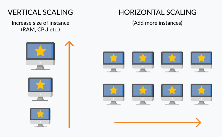 Scaling up basically involves adding more memory, CPU, disk I/O, or network I/O resources to existing instances. With public cloud providers such as Azure and AWS, scaling is done by increasing the sizes of the instances – be it EC2 instances or RDS databases. Vertical scaling is fast and simple. These characteristics make it attractive to SMBs and growing startups; however, they often limit the extent of the scalability.