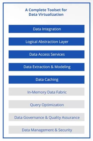 The market leading data virtualization solutions today are Denodo, SAS Federation Server, Red Hat JBoss, and TIBCO Data Virtualization.